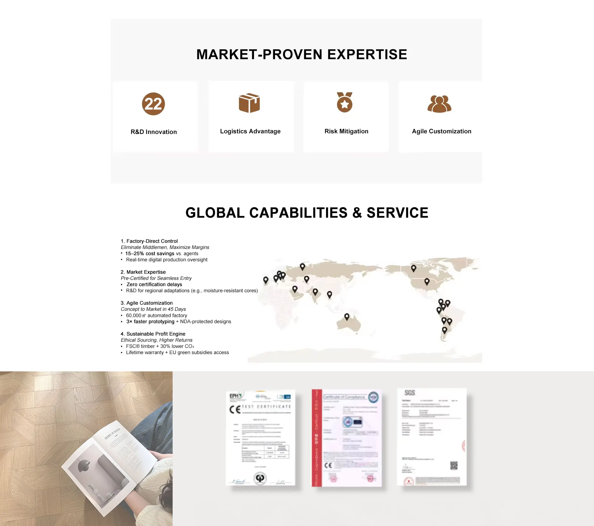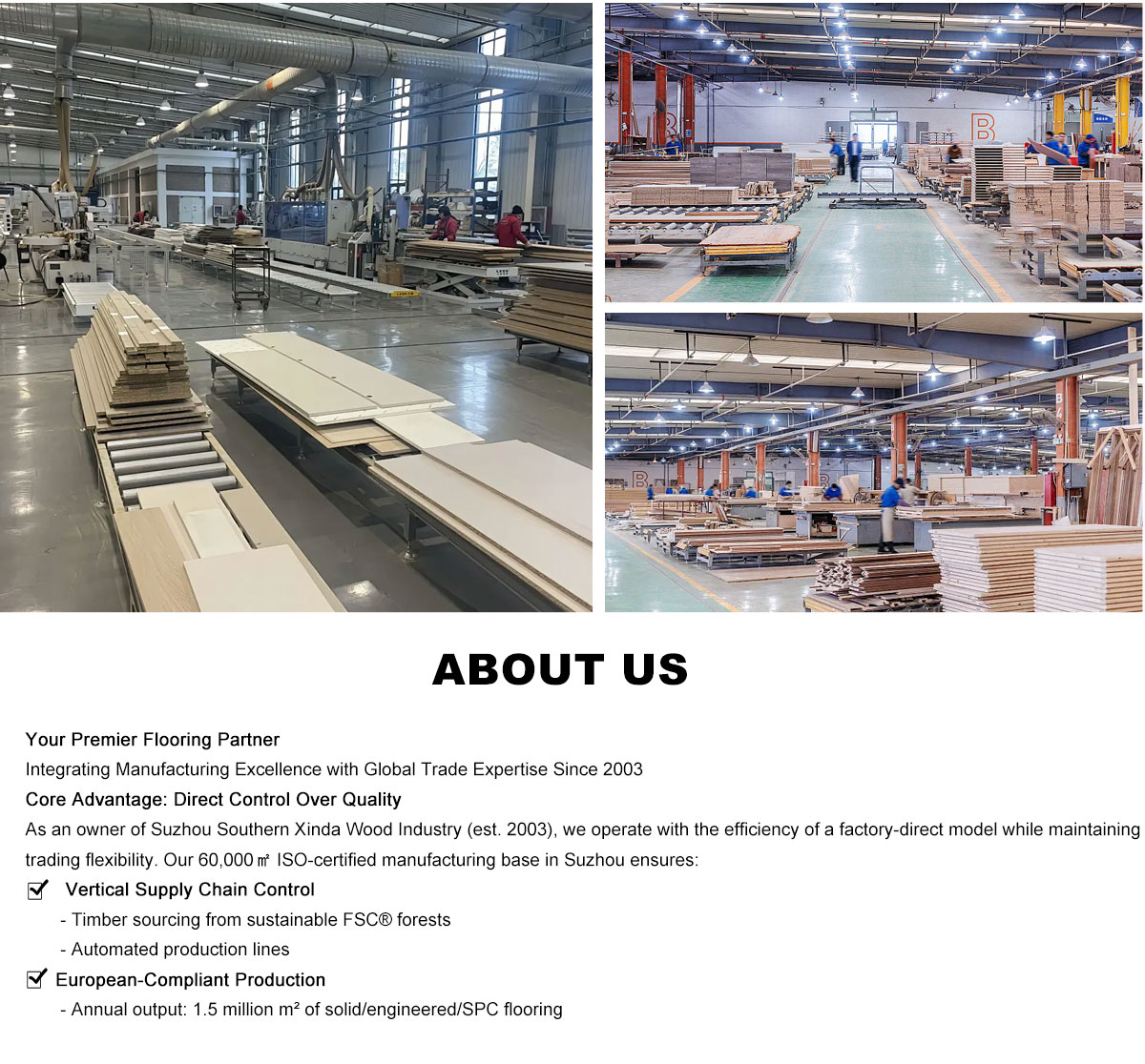 Productos principales:Pisos de madera maciza, pisos de madera de ingeniería, pisos de madera de ingeniería de 3 capas, pisos laminados, cubiertas para exteriores